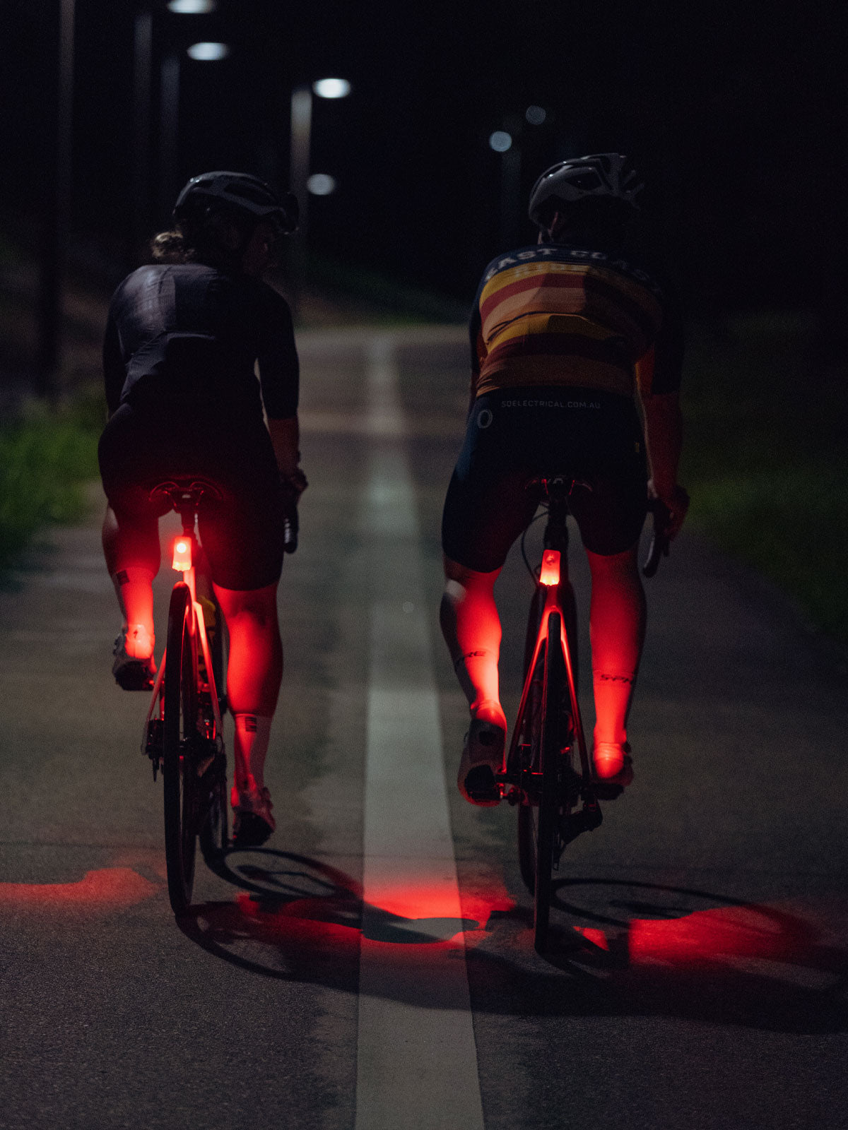 Maximises safety on Bunch rides in Low Light. Half Strength Biomotion Lighting and Solid Rear LED. Bright enough for riding in bunches without blinding others.