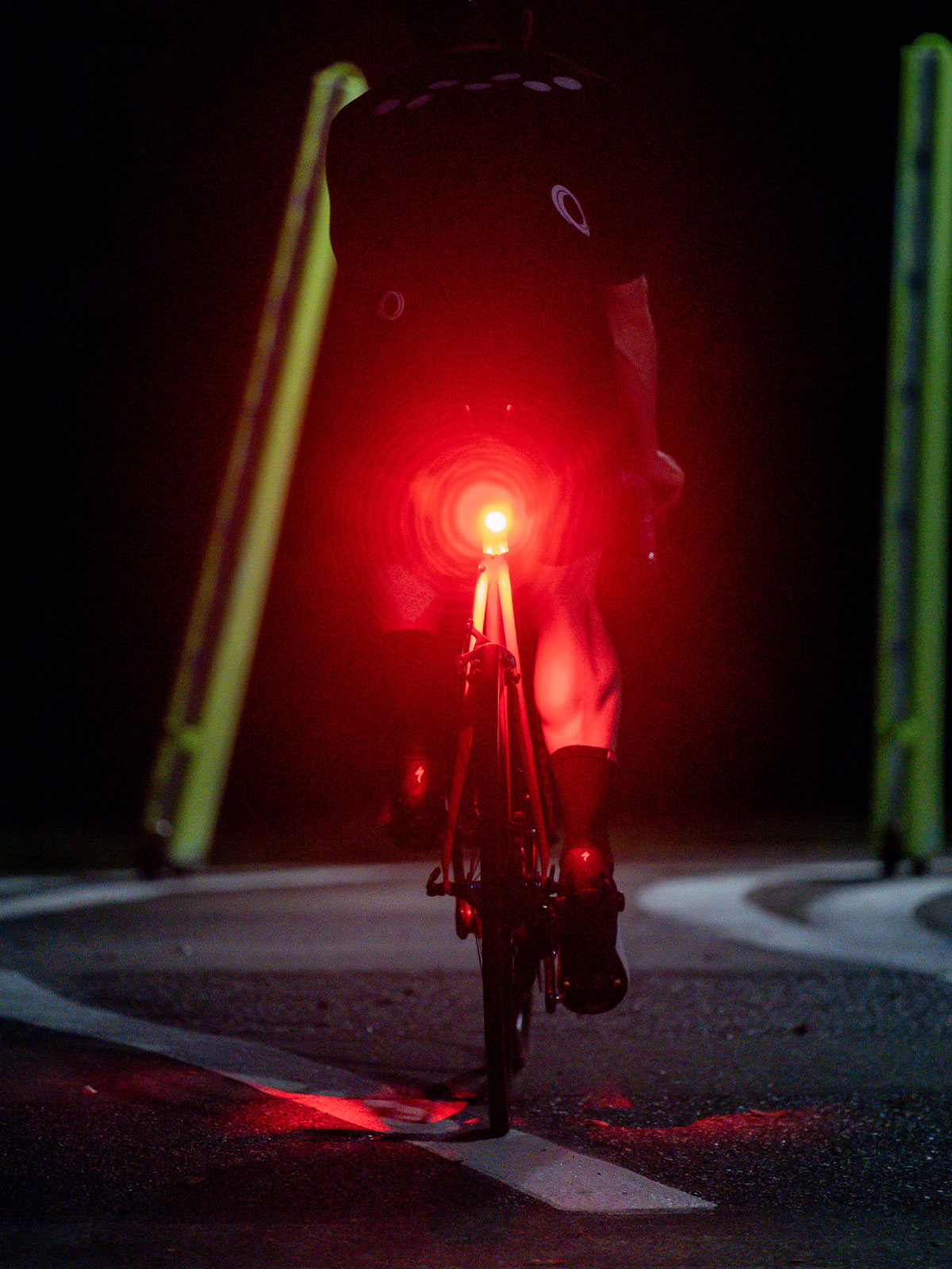 Maximizes safety on solo rides and commutes in low light conditions. Full strength Biomotion Lighting onto your legs and a rear facing flash pattern that doesn't blind others at night.